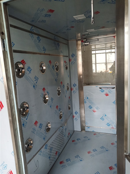 3、配全不銹鋼360度可調(diào)噴嘴,風(fēng)淋室內(nèi)底板采用的是抗磨損容易清洗的不銹鋼板。