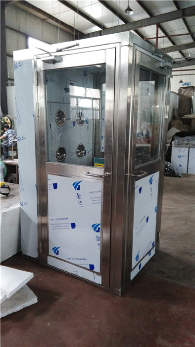 風(fēng)淋室是潔凈室中必不可少的一種潔凈設(shè)備,工作人員進(jìn)入車間時(shí),都必須經(jīng)過風(fēng)淋設(shè)備,通過360°可旋轉(zhuǎn)噴嘴吹走人或物品上的毛發(fā)、灰塵、細(xì)菌等,起到潔凈車間的作用。