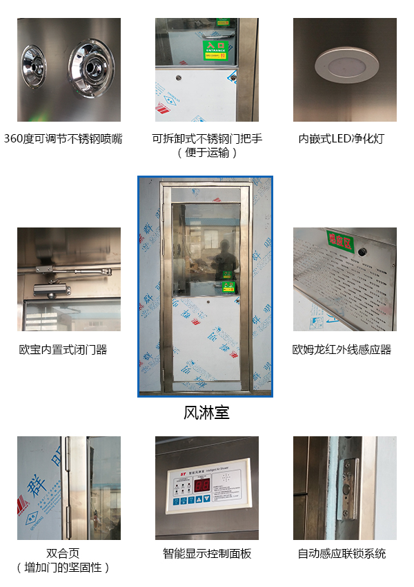3、模塊式結(jié)構(gòu),單人單吹風(fēng)淋室箱體采用模塊化設(shè)計(jì)方案。
